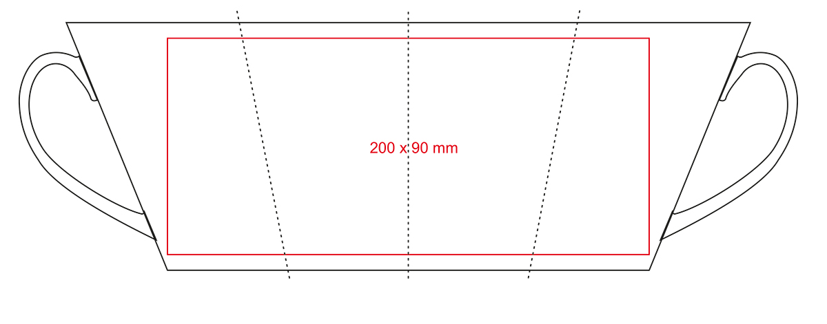 Personalizace ucha organickým obtiskem - 1 barva (55x10 mm) Personalizace uvnitř sublimačního projektu (200x90 mm) |