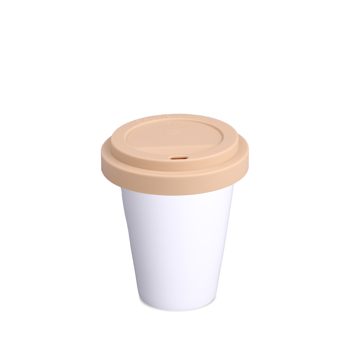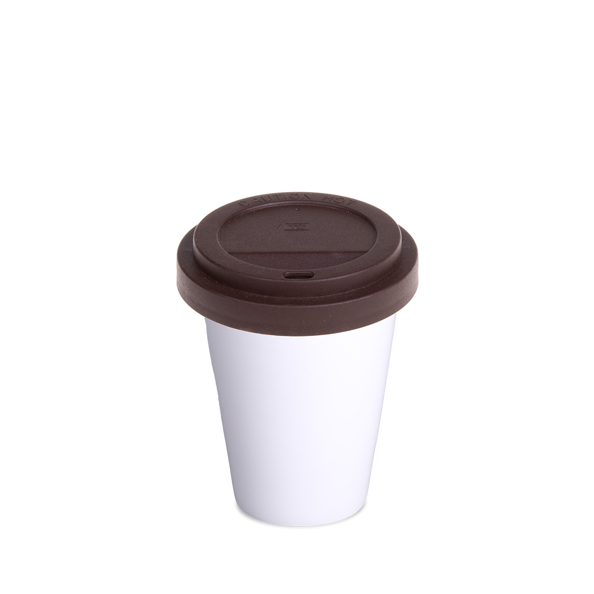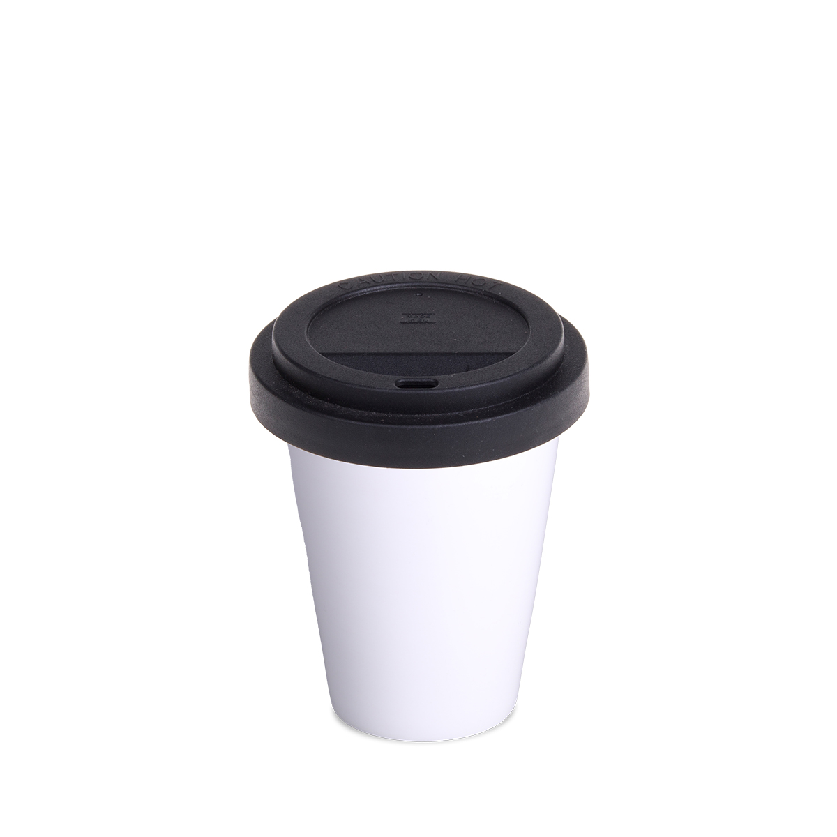 Praktický porcelánový hrnek s polymerovým víčkem, které chrání před náhodným rozlitím nápoje. Díky vzácné vnitřní struktuře dvojitých stěn z porcelánu se tento hrnek vyznačuje zvýšenou úrovní tepelné izolace. Tělo hrnku je k dispozici v barvě bílé a satin black. Víko je k dispozici v následujících barvách: bílá, oranžová 021C, šedá Cool Gray 7, tmavě modrá 294C, hnědá 4695C, černá, růžová 4064C, modrá 2144C, eukalyptová 5493C, pouštní písek 2310C.